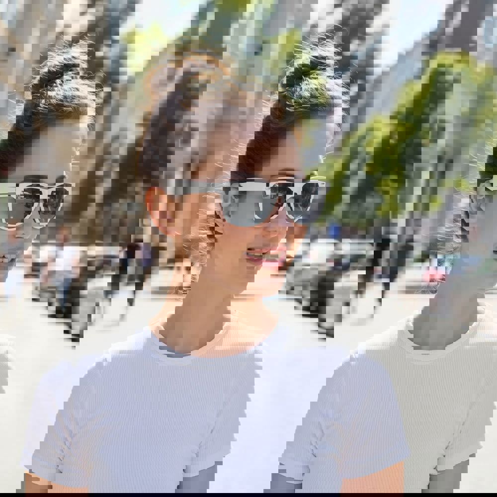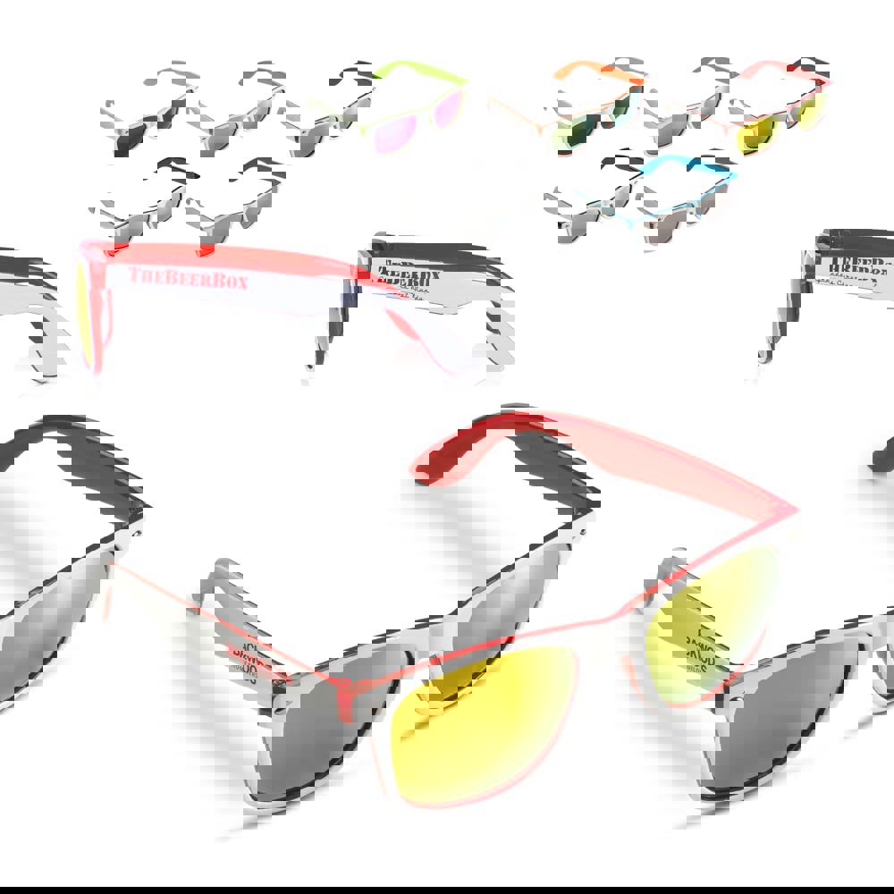 Trendy zonnebril met frame in 2-tonige kleuren. De gekleurde glazen zijn voorzien van een UV400 filter.