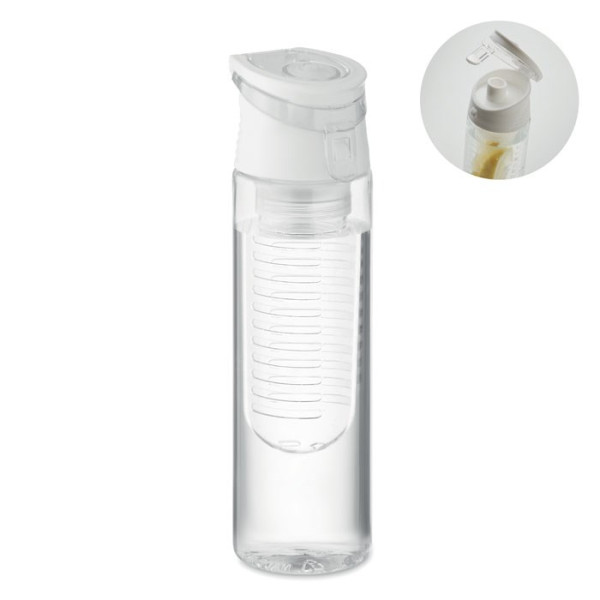 Waterfles in RPET met verwijderbaar fruitinfuser met draagbeugel en lekvrij deksel. Inhoud 500ml.