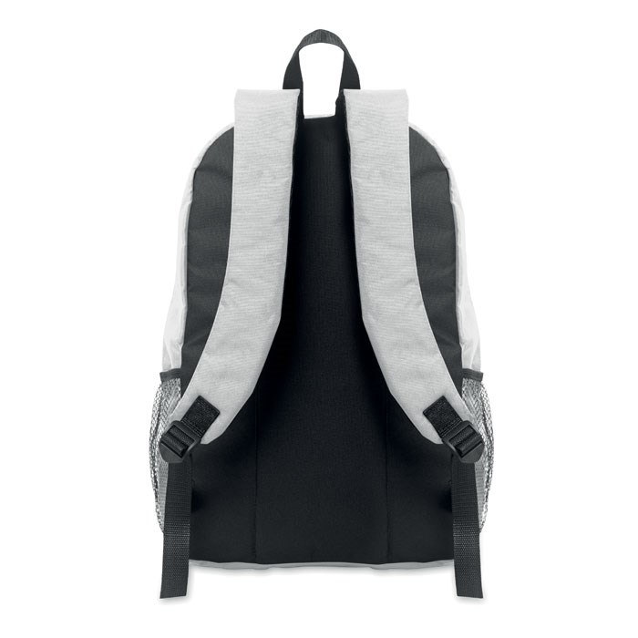 Rugzak van 600D RPET polyester met decoratief koord en ritsvak aan de voorkant. Meshzakken aan beide kanten.