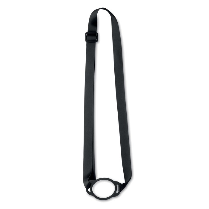 Lanyard met siliconen bekerhouder voor evenementen (6 cm diameter) en een verstelbare PP gesp. Het koord is 20 mm breed.
