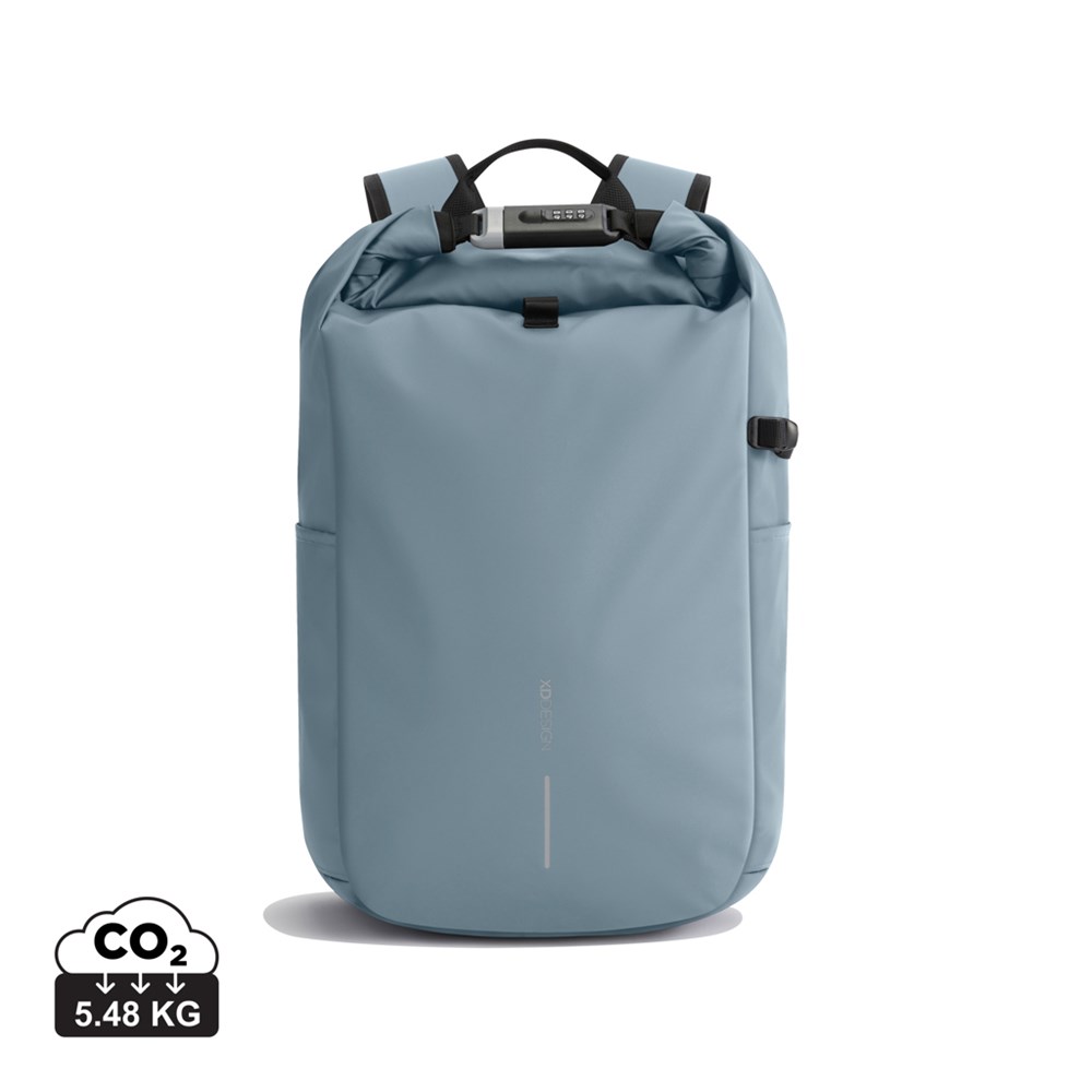 De nieuwe Urban anti-diefstal rugzak is de ideale reisgenoot, die veiligheid en gemak garandeert. Het hoofdvak wordt afgesloten door het op te rollen en vast te zetten met het versterkte combinatieslot, wat volledige afsluiting biedt en tevens gebruikt kan worden om de tas aan een vast object te vergrendelen. Verborgen vakken aan de achterkant. De tas is uitgerust met een zijvak voor een waterfles. Binnenin zorgen gewatteerde compartimenten voor een 16” laptop en gaasvakken bieden organisatie voor je benodigdheden. Gemaakt van Aware™ traceerbaar gerecycled polyester en afgewerkt met een zachte waterbestendige PU-coating. 11% gerecycled materiaal. Geregistreerd ontwerp®