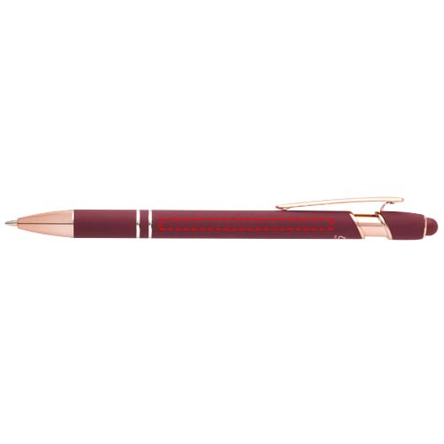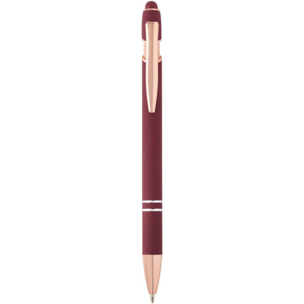 De Nanna balpen met roségouden afwerking heeft een houder van gerecycled aluminium met een siliconen touch stylus. Gerecycled aluminium vermindert de hoeveelheid afval op stortplaatsen en draagt bij aan het behoud van natuurlijke hulpbronnen, met als doel de uitstoot van broeikasgassen te verminderen. Inktkleur: zwart. Schrijflengte: 800 meter. Stiftmaat: 1,0 mm.