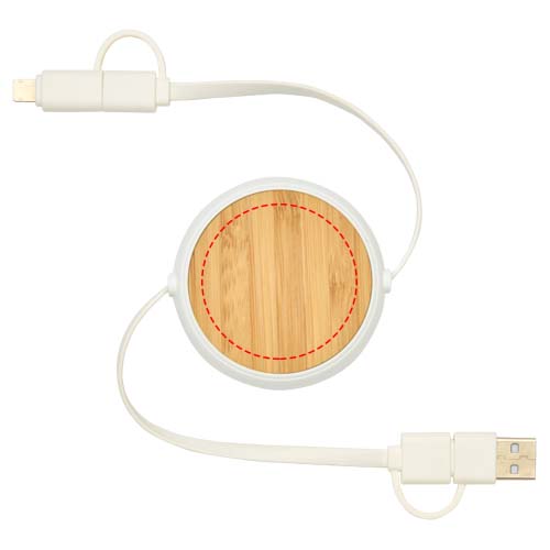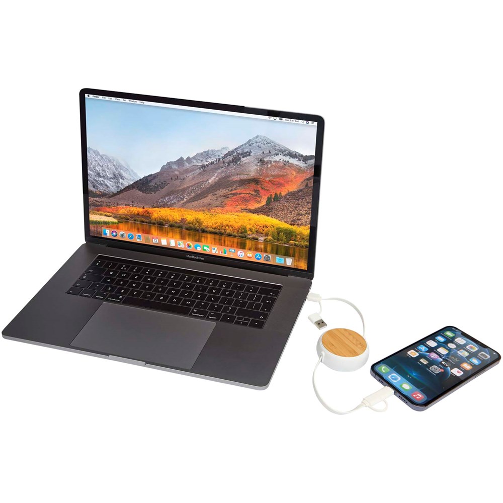 Chechia 5-in-1 100 cm intrekbare datasynchronisatie- en 45 W snellaadkabel van gerecycled plastic met bamboe details