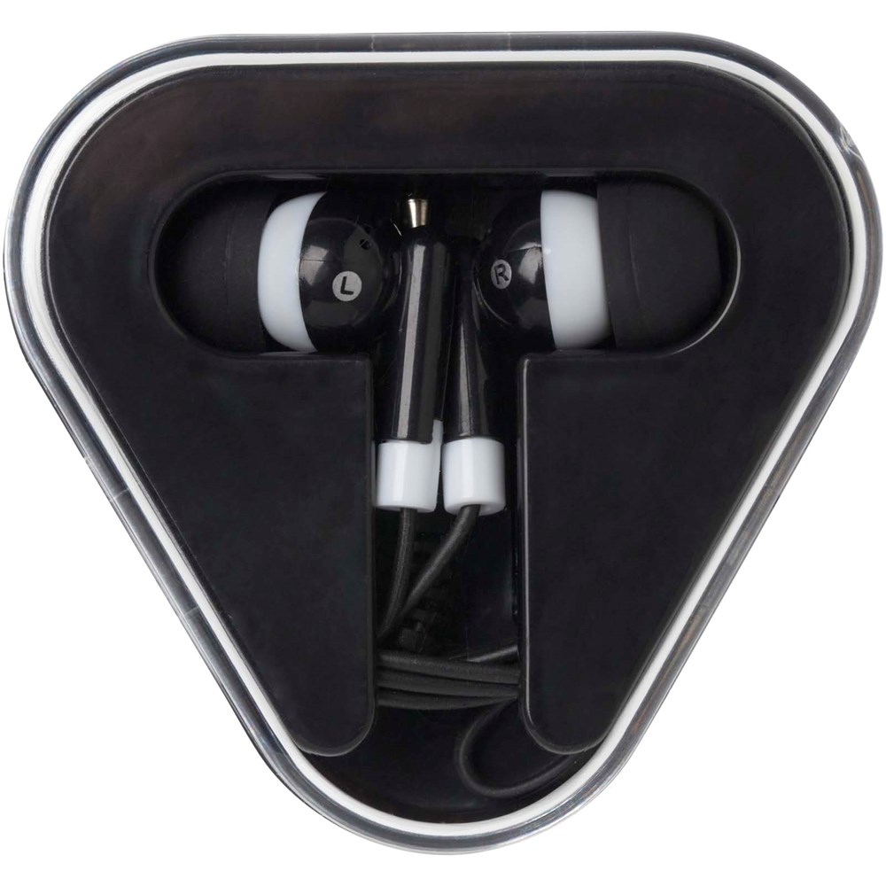 De Rebel oordopjes zijn eenvoudige oordopjes die gebruikt kunnen worden met elk standaard audioapparaat met een 3,5 mm audio-aansluiting. De oordopjes worden geleverd in een driehoekig doosje, met kabelopbergruimte, van gerecycled plastic, waardoor ze goed beschermd zijn tegen beschadigingen van buitenaf.