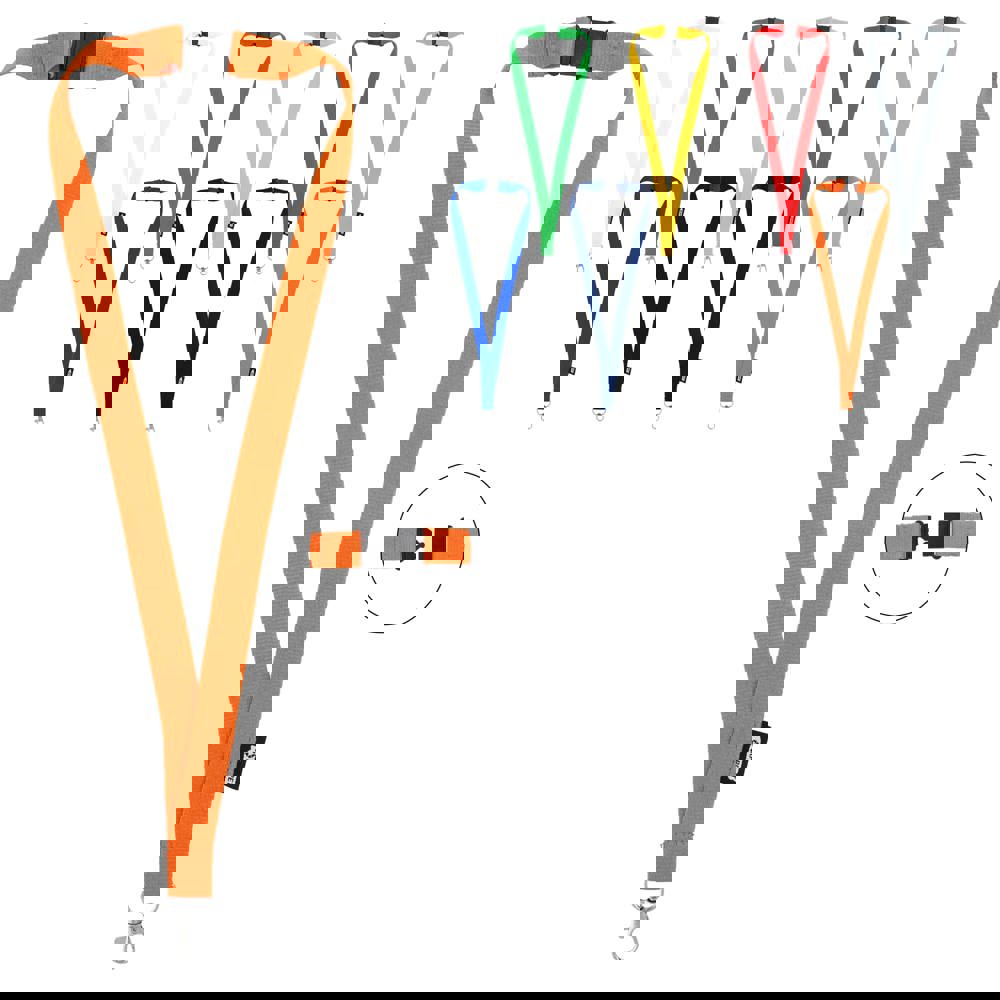 Houd je essentiële spullen bij de hand met onze R-PET lanyard, verkrijgbaar in verschillende kleuren. De lanyard heeft een veiligheidssluiting en is ideaal om sleutels, badges, ID's en meer te dragen.