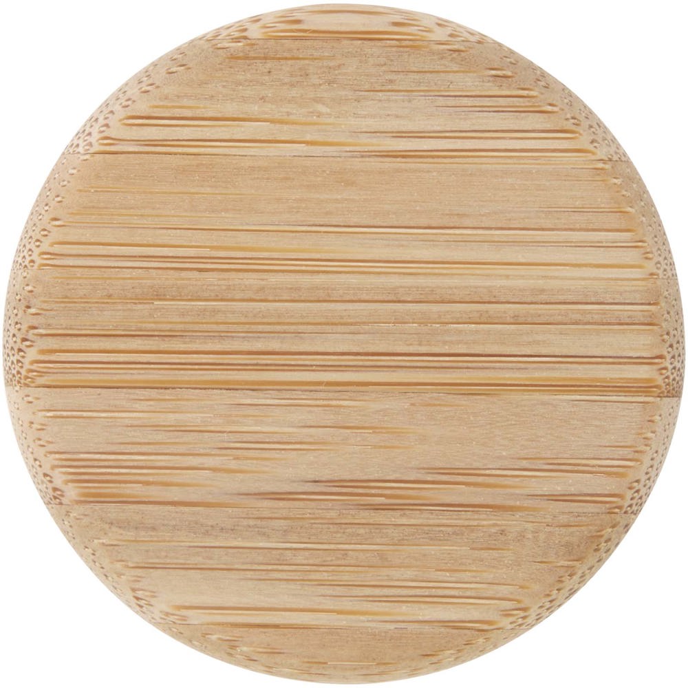 Enkelwandige glazen waterfles met een schroefdeksel van bamboe, afkomstig van duurzamere en sociaal verantwoorde bronnen. Hij wordt geleverd met een comfortabele siliconen riem om hem gemakkelijk te dragen. Gepresenteerd in een gerecyclede kartonnen geschenkverpakking. Inhoud: 500 ml.
