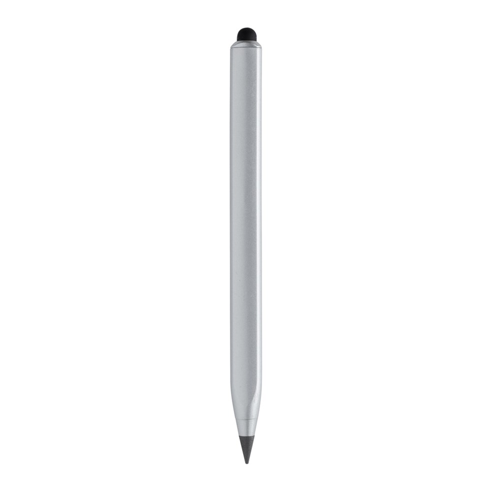 Moderne oneindigheidspen gemaakt van RCS-gecertificeerd gerecycled aluminium. Totaal gerecycled materiaal: 40% op basis van het totale gewicht van het artikel. RCS-certificering zorgt voor een volledig gecertificeerde toeleveringsketen van de gerecyclede materialen. Driehoekig gevormd model met één zijde met CM-aanduiding en één zijde met inches. Traditionele houten potloden schrijven slechts tot ongeveer 200 meter, maar deze boomvrije oneindigheidspen heeft een schrijflengte van tot wel 20000 meter met een grafietpunt om een grafietlijn te produceren. Niet alleen schrijft het als een potlood, maar de markeringen kunnen ook worden uitgegumd. Het werkt door een grafietlijn op papier achter te laten, net als een regulier traditioneel houten potlood, maar het slijt zo langzaam dat het tot wel 100 traditionele houten potloden zou kunnen overleven! Met een touchtip om een mobiel apparaat te bedienen. Verpakt in FSC® mix-verpakki