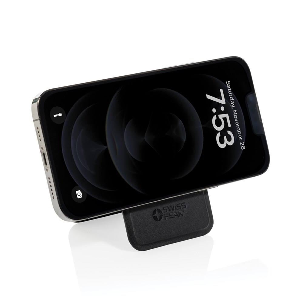 Maak kennis met deze ultieme combinatie van gemak en stijl. Zeg vaarwel tegen overvolle zakken en het zoeken naar kaarten: deze strakke accessoire houdt je essentiële spullen bij de hand en verandert moeiteloos in een standaard voor handsfree kijken.Deze magnetische telefoonportemonnee met standaard is gemaakt van RCS-gerecycled PU is ontworpen om naadloos te passen bij telefoons die magnetische functies ondersteunen. Dankzij het minimalistische ontwerp biedt hij plaats aan twee kaarten en biedt hij precies de juiste hoeveelheid opslagruimte zonder aan elegantie in te boeten. Of u nu onderweg bent of gewoon thuis ontspant, dit veelzijdige accessoire zorgt ervoor dat uw telefoon en kaarten altijd binnen handbereik zijn. Draai de portemonnee eenvoudig om en verander hem in een stevige standaard, die de perfecte kijkhoek voor uw apparaat biedt. Totaal gerecycled materiaal: 5% op basis van het totale gewicht van het item.