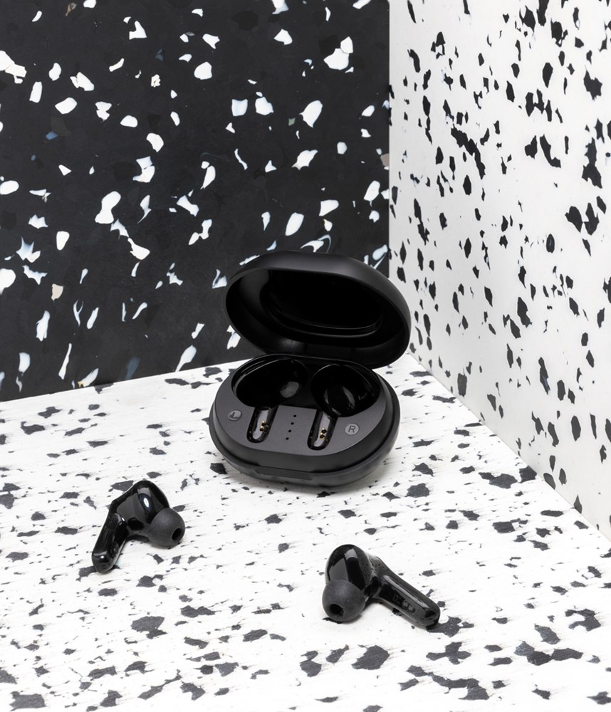 TWS-oordopjes waarbij de oordopjes en de oplaadcassette zijn gemaakt van RCS-gecertificeerd gerecycled ABS-plastic. RCS (Recycled Claim Standard) is een norm om de gerecyclede materialen in een product in de hele toeleveringsketen te verifiëren.Totaal gerecycled materiaal: 67% gebaseerd op het totale gewicht van het item. RCS is de standaard die wordt gebruikt wanneer een deel van het artikel is gemaakt van gerecyclede materialen. De draadloze hoofdtelefoon maakt gebruik van BT 5.0 voor een supersoepele verbinding en langdurige speeltijd. De 40 mAh-batterij per batterij maakt een speeltijd tot 4 uur mogelijk en kan in 1,5 uur volledig worden opgeladen in de 300 mAh-oplaadkoffer. Werkafstand tot 10 meter. Met microfoon en touch pick-up functie. Artikel en accessoires PVC vrij. Inclusief PVC-vrije oplaadkabel van gerecycled TPE-materiaal.