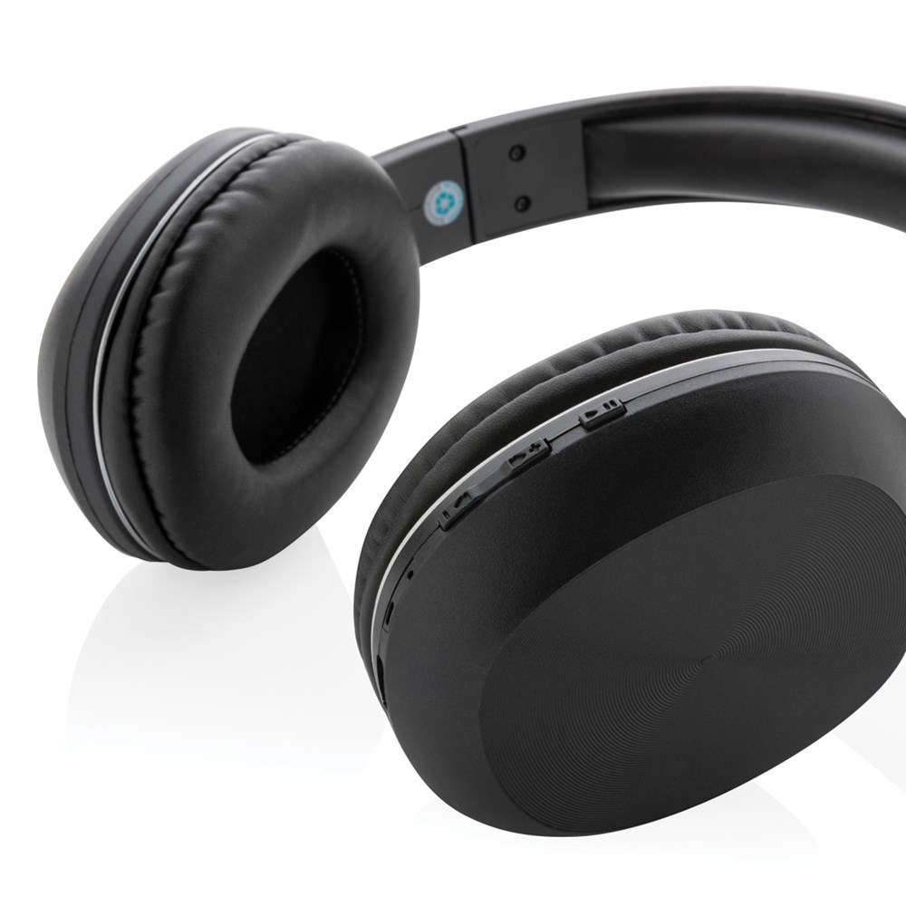 Comfortabele draadloze hoofdtelefoon die BT5.1 gebruikt voor een supersoepele verbinding en langdurige speeltijd. Gemaakt met RCS (Recycled Claim Standard) gecertificeerd gerecycled ABS. Totaal gerecycled materiaal: 73 % op basis van het totale gewicht van het artikel. RCS-certificering zorgt voor een volledig gecertificeerde toeleveringsketen van de gerecyclede materialen. Het over-ear ontwerp van de oordopjes zorgt voor een perfecte geluidservaring. De ingebouwde lithiumbatterij van 200 mAh maakt een speelduur tot 5 uur mogelijk en kan in 1,5 uur volledig worden opgeladen. Werkafstand tot 10 meter. Inclusief microfoon om telefoontjes te beantwoorden. Inclusief GRS gecertificeerde gerecyclede TPE laadkabel. Verpakt in FSC® mix verpakking. Artikel en accessoires 100% PVC-vrij.