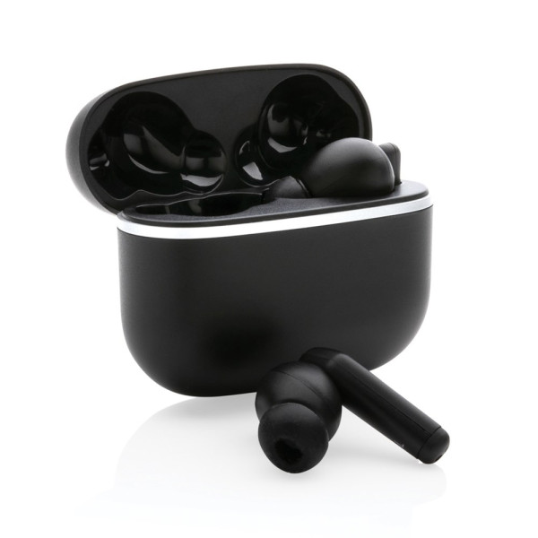 Draadloze oordopjes met mooi zuiver geluid . De oordopjes en het oplaadcase zijn gemaakt van RCS (Recycled Claim Standard) gecertificeerd gerecycled ABS. Totaal gerecycled materiaal: 59% op basis van het totale gewicht van het item. RCS-certificering zorgt voor een volledig gecertificeerde toeleveringsketen van de gerecyclede materialen. De oordopjes worden geleverd in een compacte 400 mAh oplaadcassette waarmee u uw oordopjes kunt opladen en overal mee naartoe kunt nemen. De oordopjes gebruiken BT 5.3 voor automatisch koppelen zonder gedoe en met een stabiele verbinding. De oordopjes hebben een 40 mAh-batterij die een speelduur van maximaal 4 uur mogelijk maakt en in de oplaadcassette in 1,5 uur weer kan worden opgeladen. Het draadloze afstandsbereik is maximaal 10 meter. Inclusief type C laadkabel gemaakt van GRS gecertificeerd gerecycled TPE. Verpakt in FSC® mix geschenkdoos. Artikel en accessoires 100% PVC-vrij