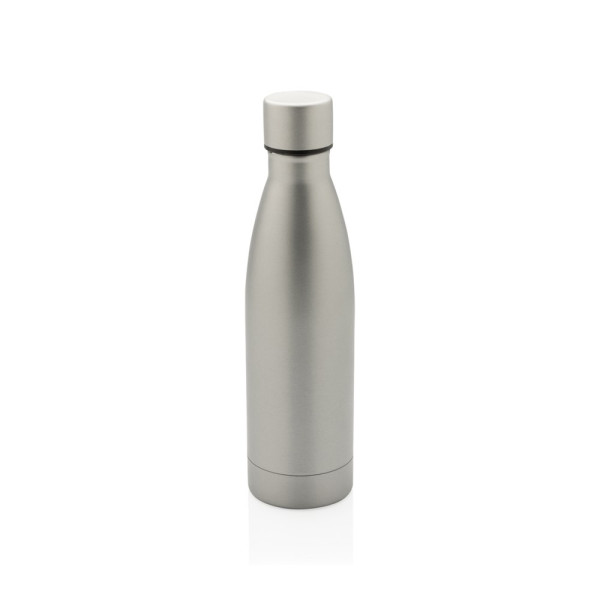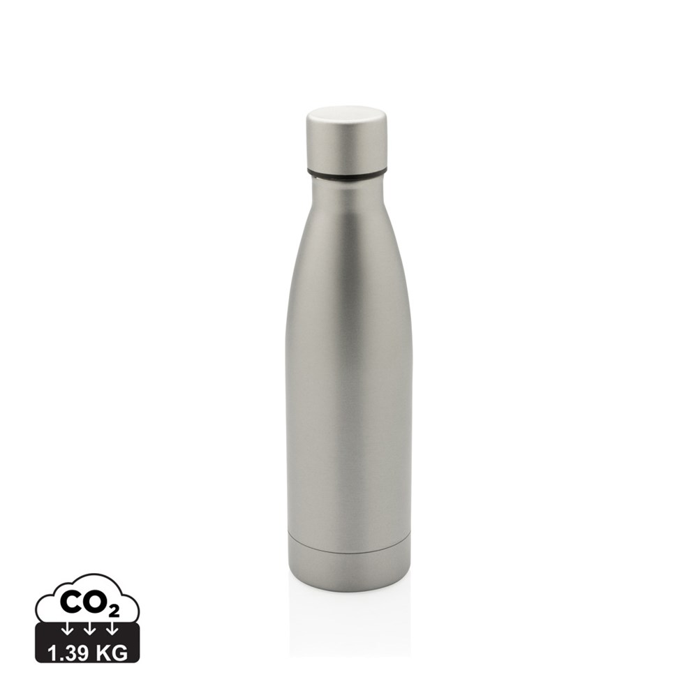 Deze RCS Recycled roestvrijstalen vacuümfles is ontworpen om lang van je drankjes te genieten! De dubbelwandige vacuümconstructie van gerecycled roestvrij staal houdt dranken 15 uur gekoeld of 5 uur warm. Deze fles past in de meeste standaard auto bekerhouders, zodat je hem overal mee naartoe kunt nemen. Gemaakt met RCS (Recycled Claim Standard) gecertificeerde gerecyclede materialen. RCS-certificering zorgt voor een volledig gecertificeerde toeleveringsketen van de gerecyclede materialen. Totaal gerecycled materiaal: 93% op basis van het totale gewicht van het item. BPA-vrij. Capaciteit 500ml. Inclusief FSC®-gecertificeerde kraftverpakking.