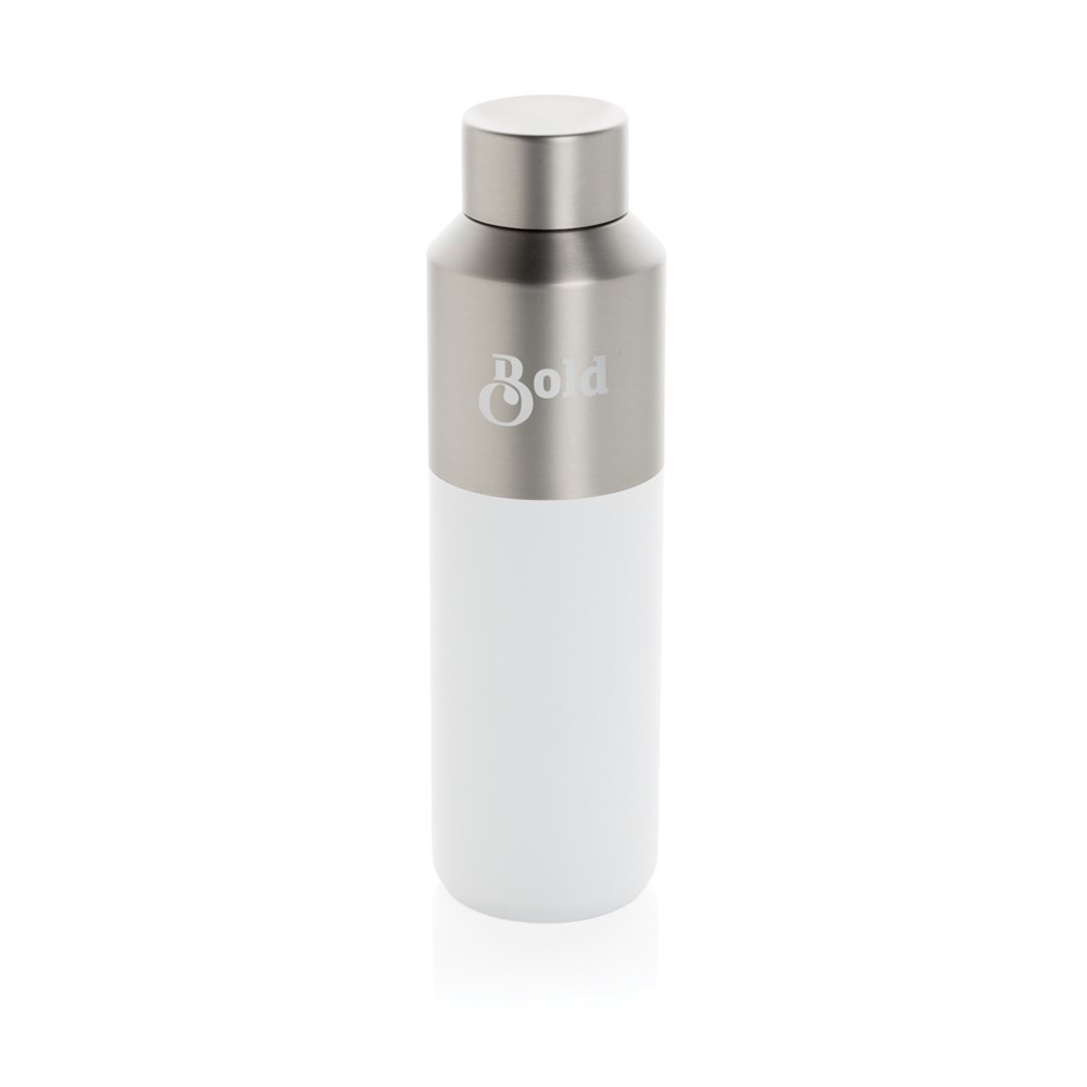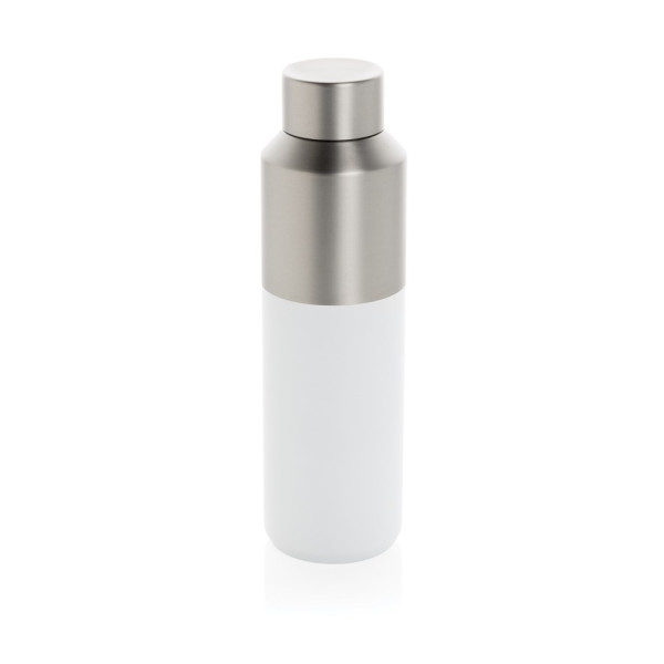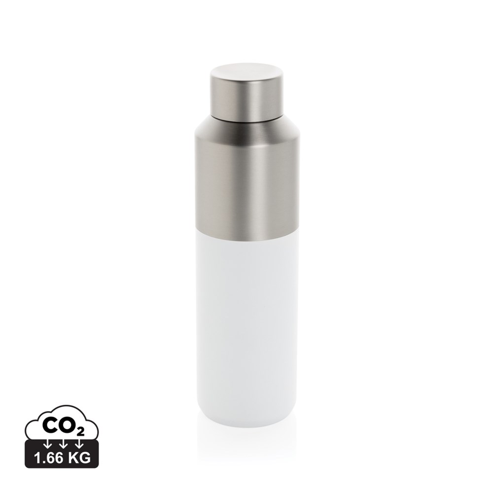 Deze 600 ml waterfles heeft een opvallende dubbelgekleurde buitenkant met een stijlvol half-half ontwerp. De dubbelwandige vacuümconstructie van gerecycled roestvrij staal houdt dranken tot 15 uur gekoeld of tot 5 uur warm. De waterfles past in de meeste standaard bekerhouders in de auto, wat hem perfect maakt voor onderweg. Gemaakt van RCS (Recycled Claim Standard) gecertificeerde gerecyclede materialen, wat zorgt voor een volledig gecertificeerde toeleveringsketen van de gerecyclede materialen. BPA-vrij. Inclusief FSC®-gecertificeerde kraft koker geschenkverpakking. Totaal gerecyclede inhoud: 95% op basis van het totale gewicht van het artikel.