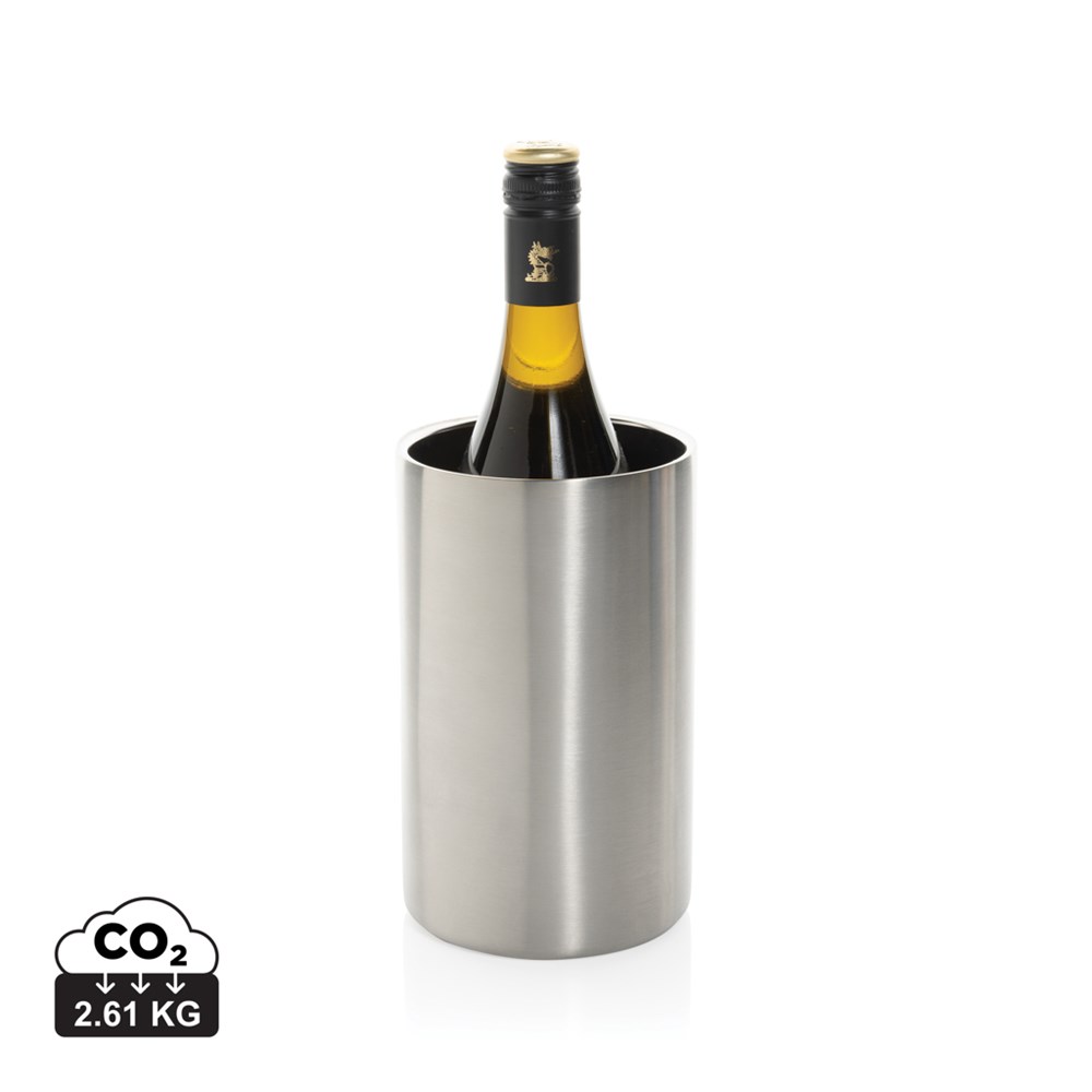 Ontvang uw gasten in stijl met de Vino gerecyclede roestvrijstalen wijnkoeler. Dit opvallende stuk is een ideaal middelpunt terwijl u drankjes serveert en conversaties voert, waardoor u uw wijnen met gratie en stijl kunt koelen. Gemaakt met RCS-gecertificeerd gerecycled roestvrij staal. Totale gerecyclede inhoud: 91% op basis van het totale gewicht van het item. Verpakt in een FSC® kraft verpakking.