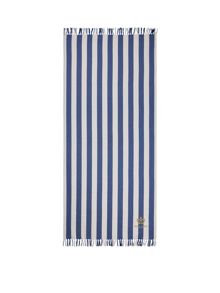 Dit hamamstrandlaken heeft een klassiek tweekleurig streeppatroon met franjes aan de korte zijden. Het is gemaakt van een lichte en luchtige 200 grams mix en combineert het comfort van katoen met de sneldrogende voordelen van polyester. Met een afmeting van 80x180 cm is het perfect voor op het strand of bij het zwembad. Gecertificeerd door GRS (Global Recycled Standard), GRS certificering garandeert dat de hele toeleveringsketen van de gerecyclede materialen gecertificeerd is. Het totale gerecyclede gehalte is gebaseerd op het totale productgewicht. Dit product bevat 68% GRS-gecertificeerd gerecycled katoen en 29% GRS-gecertificeerd gerecycled polyester.