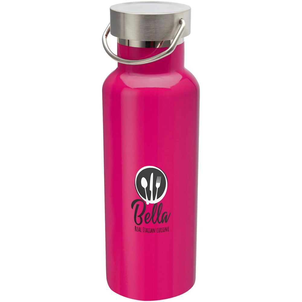 Duurzame, dubbelwandige, vacuümgeïsoleerde RCS-gecertificeerde roestvrijstalen drinkfles, die dranken 12 uur warm en 24 uur koud houdt. De fles heeft een schroefdop van roestvrij staal en een stevige draaglus. Inhoud: 500 ml. Lekvrij. Geleverd in een geschenkverpakking.