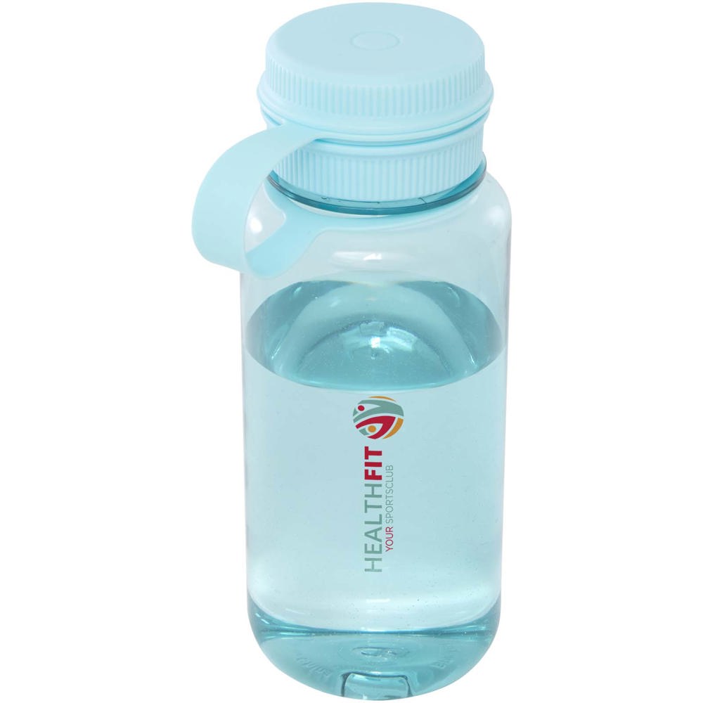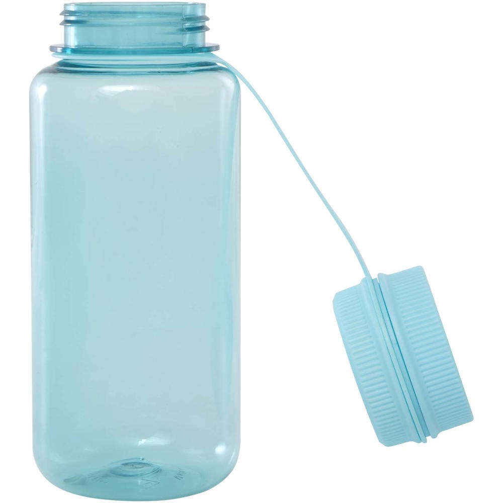 Enkelwandige sportfles gemaakt van RCS-gecertificeerd RPET, met een schroefdop en lekvrije deksel met een handig, in de dop geïntegreerde handgreep om mee te nemen. Eenvoudig te reinigen en vullen door de dubbele opening. In overeenstemming met het door de EFSA (Europese Autoriteit voor voedselveiligheid) goedgekeurde PET-recyclingproces. Inhoud: 900 ml.