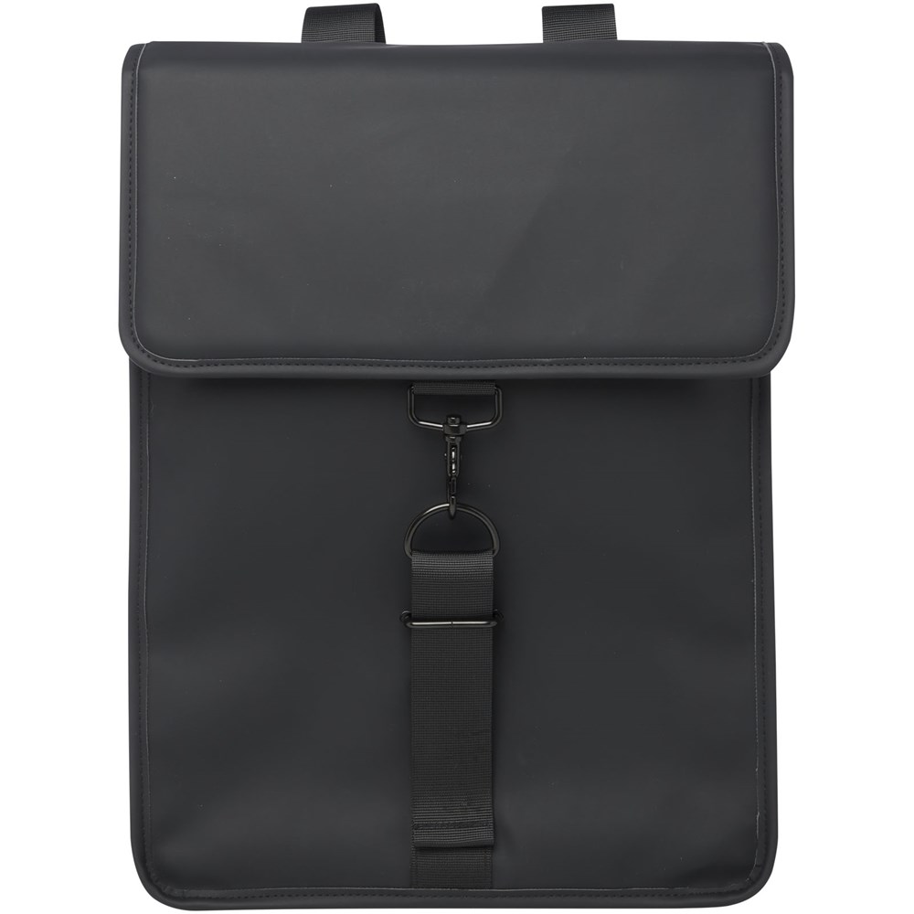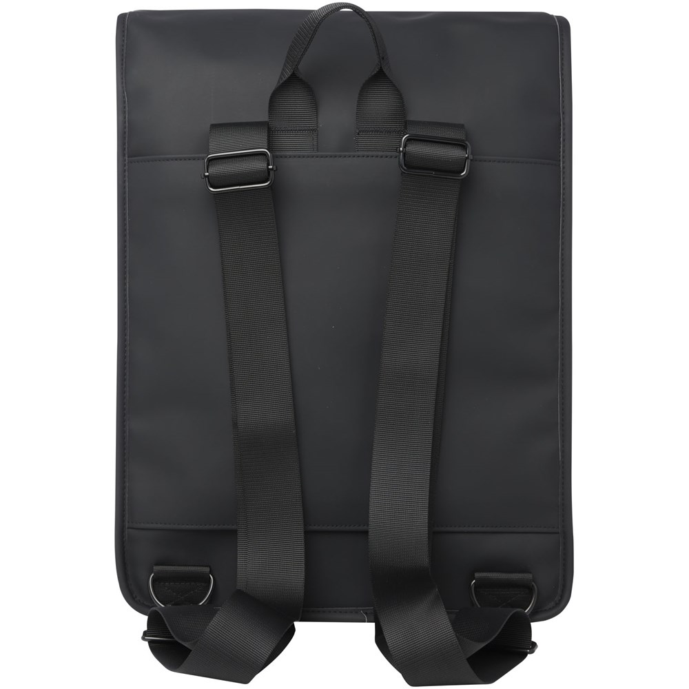 De Turner rugzak is ontworpen met zeer duurzame en verantwoorde materialen. De buitenkant is gemaakt van 51% GRS-gerecycled PU-plastic en de voering van 100% GRS-gerecycled RPET. De rugzak heeft een gewatteerd vak voor een 15,6" laptop, een band aan de binnenkant om een drinkfles op te bergen en een ritsvak voor kleinere spullen. Het hoofdvak kan worden geopend en gesloten met een klikgesp. Deze rugzak is gemaakt om lang mee te gaan, en dankzij het tijdloze ontwerp en de stevige materialen wordt het al snel een favoriet. Inhoud: 8 liter.