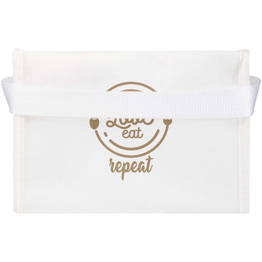 Gemaakt van duurzaam en scheurbestendig non-woven RPET. De 6-can Spectrum gerecyclede koeltas is geschikt voor maximaal 6 blikjes en heeft een gemakkelijk te dragen geweven handvat. Inhoud: 4 liter.