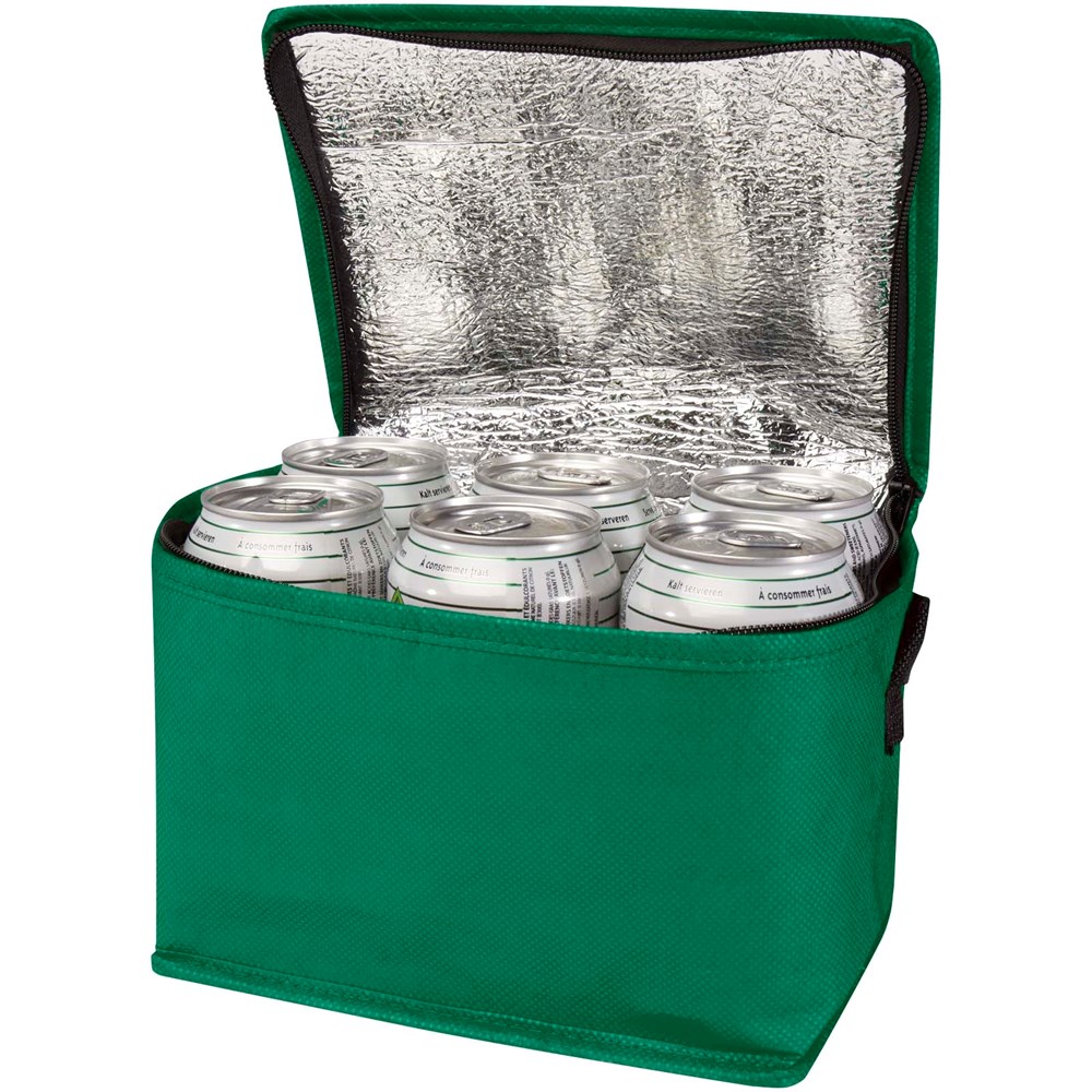 Gemaakt van duurzaam en scheurbestendig non-woven RPET. De 6-can Spectrum gerecyclede koeltas is geschikt voor maximaal 6 blikjes en heeft een gemakkelijk te dragen geweven handvat. Inhoud: 4 liter.