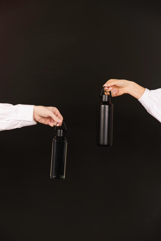 Deze dubbelwandige vacuümfles, gemaakt van RCS gecertificeerd recycled roestvrij staal, biedt zowel prestaties als stijl. Ontworpen met een minimalistisch PU handvat en zwarte details die de essentie van de Baltimore serie weergeven. De dubbelwandige isolatie houdt dranktemperaturen tot 12 uur koud en tot 6 uur warm, of je nu koel wilt blijven met een gekoeld drankje of onderweg van een warme drank wilt genieten. Niet geschikt voor de vaatwasser of magnetron, alleen handwas. Gecertificeerd door RCS (Recycled Claim Standard), RCS-certificering garandeert dat de hele toeleveringsketen van gerecyclede materialen gecertificeerd is. De totale gerecyclede inhoud is gebaseerd op het totale productgewicht. Dit product bevat 80% RCS-gecertificeerd gerecycled roestvrij staal.