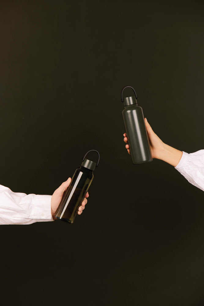 Deze dubbelwandige vacuümfles, gemaakt van RCS gecertificeerd recycled roestvrij staal, biedt zowel prestaties als stijl. Ontworpen met een minimalistisch PU handvat en zwarte details die de essentie van de Baltimore serie weergeven. De dubbelwandige isolatie houdt dranktemperaturen tot 12 uur koud en tot 6 uur warm, of je nu koel wilt blijven met een gekoeld drankje of onderweg van een warme drank wilt genieten. Niet geschikt voor de vaatwasser of magnetron, alleen handwas. Gecertificeerd door RCS (Recycled Claim Standard), RCS-certificering garandeert dat de hele toeleveringsketen van gerecyclede materialen gecertificeerd is. De totale gerecyclede inhoud is gebaseerd op het totale productgewicht. Dit product bevat 80% RCS-gecertificeerd gerecycled roestvrij staal.