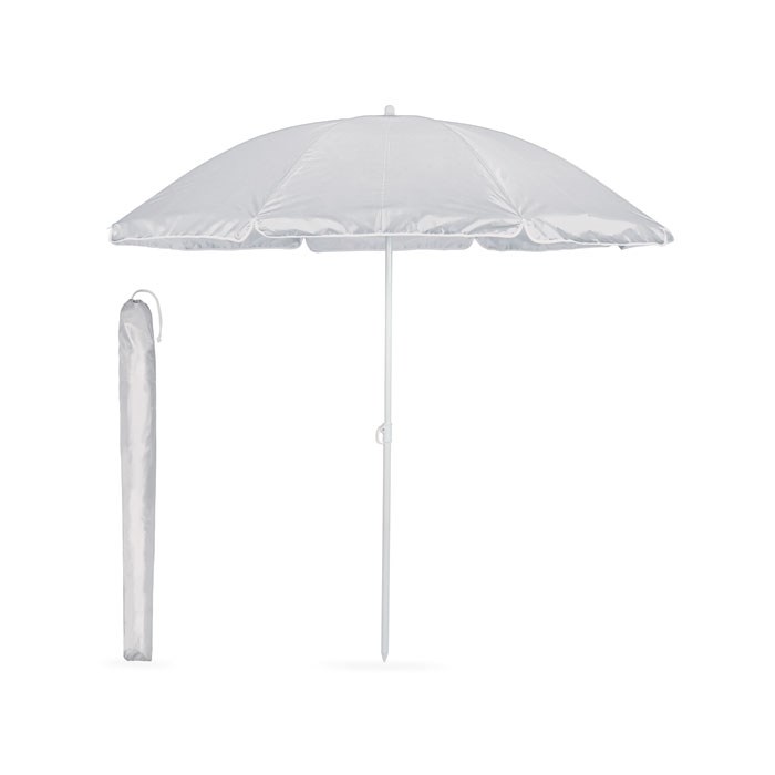 Parasol van 210T polyester. Lichtgewicht en makkelijk mee te nemen in de draagzak.