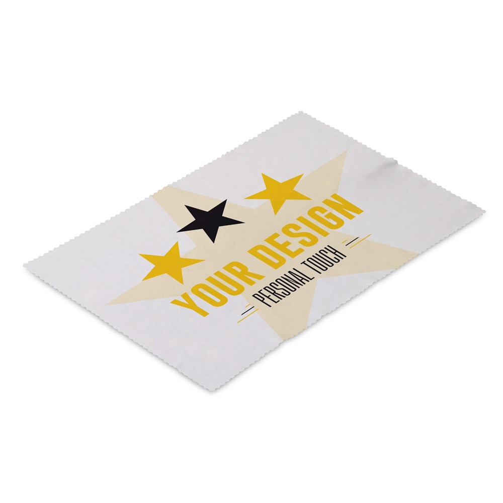Microvezel schoonmaakdoekje 250g/m² van 200x300mm voor beeldschermen of brillen. Inclusief full-colour all-over bedrukking. Standaard per stuk in een zakje. Bedrukking op tweede zijde en levering in PVC bewaaretui optioneel.