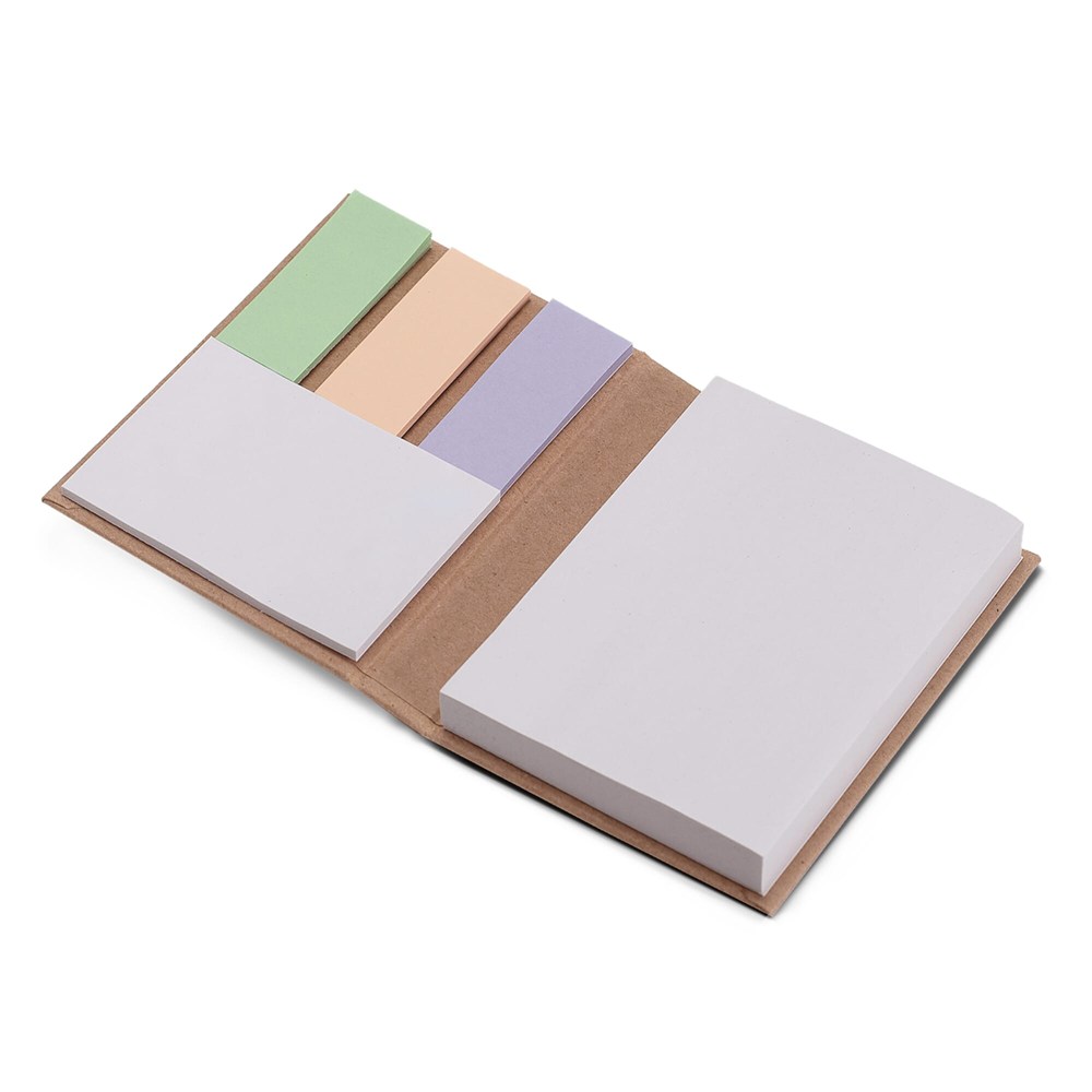 Hardcover boekje met 100 grote en 25 kleine zelfklevende memoblaadjes. Ook bevat dit boekje drie verschillende kleuren index tabs. De memoblaadjes en cover kunnen naar wens bedrukt worden.