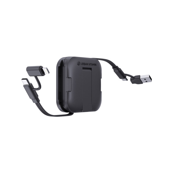 De ultieme alles-in-één oplaadoplossing. San Jose is een 100W telefoonhouder met een geïntegreerde intrekbare oplaadkabel die supersnelle stroom en gemak levert. Met zijn magnetische telefoonhouder en kickstand houdt de San Jose je telefoon veilig en rechtop in de perfecte hoek voor handsfree gebruik - of je nu video's bekijkt, videogesprekken voert of CarPlay gebruikt. De intrekbare RTPE-kabel is tot 100 cm uittrekbaar en biedt supersnel opladen, met ondersteuning voor een vermogen tot 100 W met de USB-C naar USB-C-kabel. Hij wordt ook geleverd met USB-A naar USB-C en USB-A naar iOS-connectoren, waardoor hij veelzijdig genoeg is om een ​​breed scala aan apparaten op te laden. Bovendien ondersteunt het gegevensoverdracht voor naadloze bestandssynchronisatie tijdens het opladen. San Jose is gemaakt met RCS (Recycled Claim Standard) gecertificeerde RABS & RTPE-materialen. Totaal gerecycled materiaal 59% op basis van het artikelgewicht. Urban Vitamin-artikelen zijn gemaakt zonder PVC.