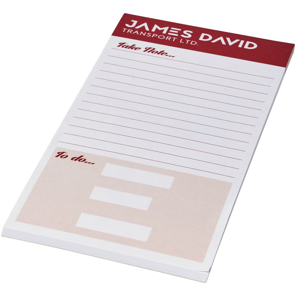 Wit kladblok 1/3 A4 Desk-Mate®. Standaardmodel Inclusief 50 vel 80 g/m2 papier. Full colour print beschikbaar op elk vel. Beschikbaar in 3 formaten (25/50/100 vellen).