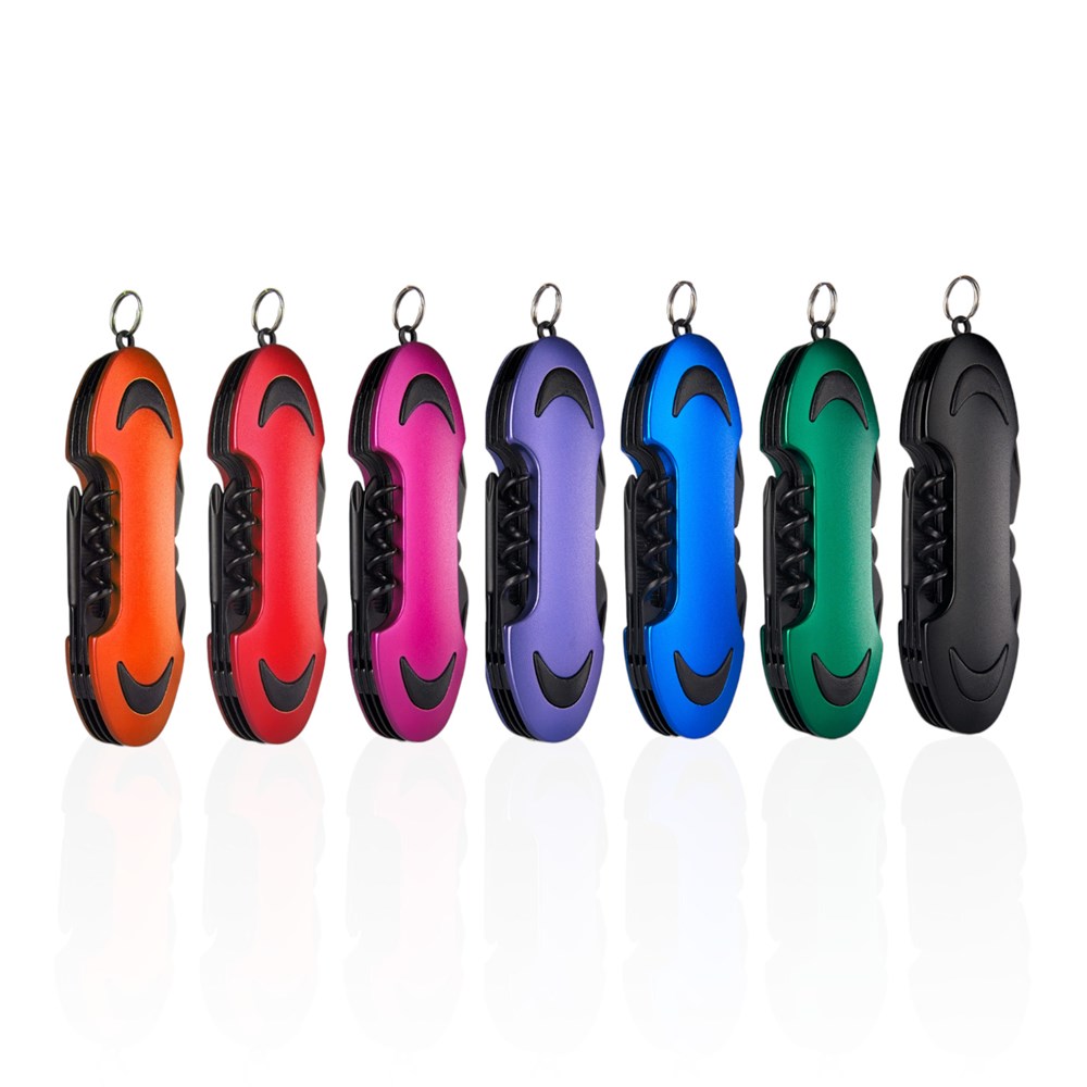 Betrouwbaar en duurzaam Colorado zakmes van geanodiseerd metaal met ingebouwde kurkentrekker, flesopener, kruisschroevendraaier, nagelvijl en schaar.