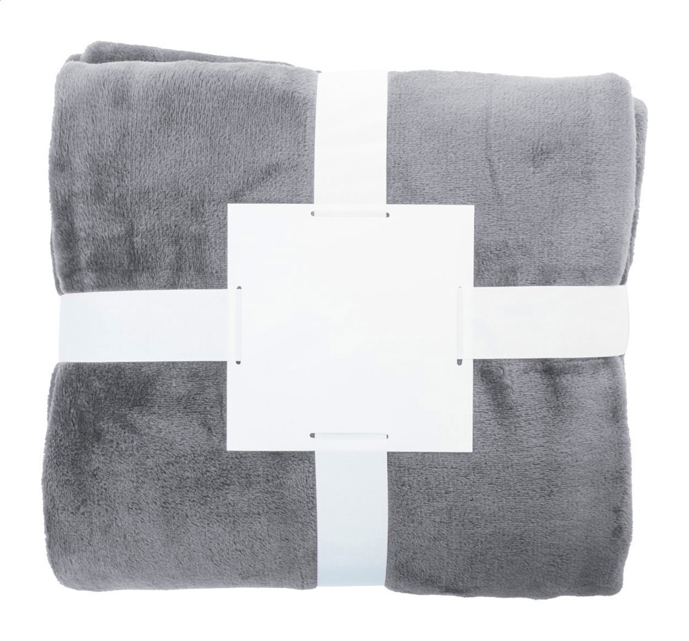 RPET flanel fleece deken, 260 gr/m². Verpakt met lint en bedrukbare papieren kaart.