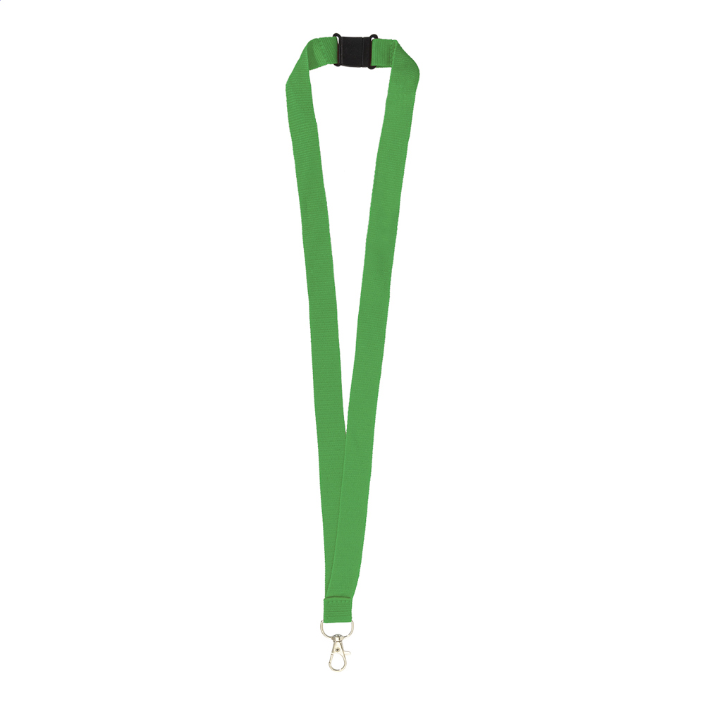 RPET polyester sleutelkoord met metalen karabijnhaak en veiligheidsgesp.