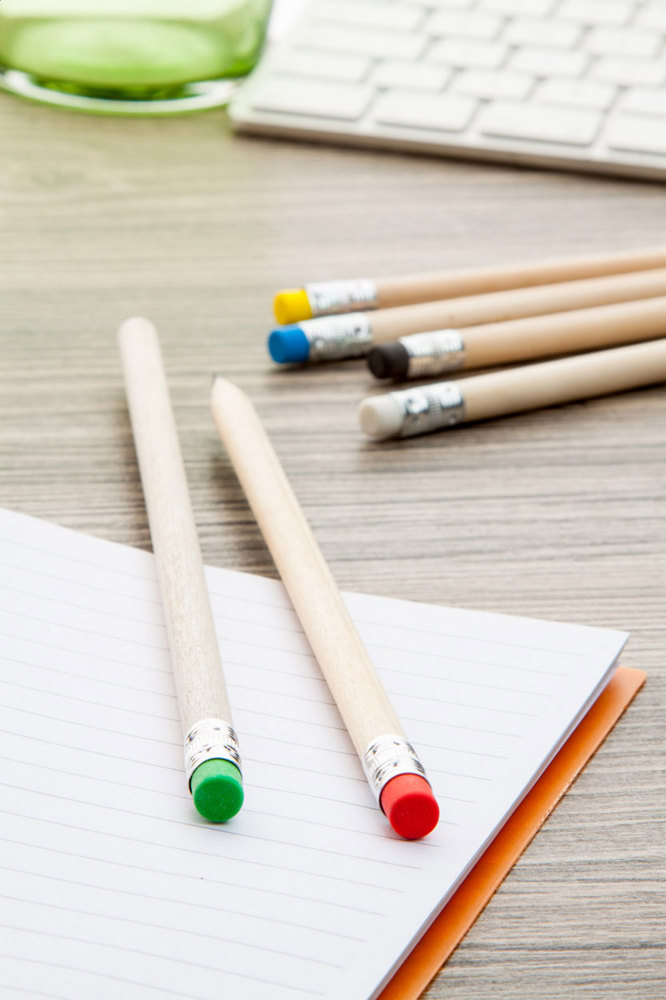Houten potlood met gekleurde gum. Niet geslepen.meer