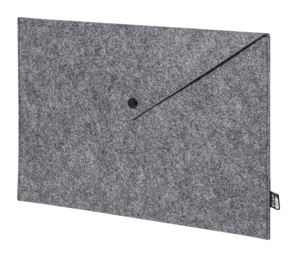 RPET vilt document tas of laptop zakje met knoopsluiting. Past op laptops tot 13". Met onderscheidend RPET-label.