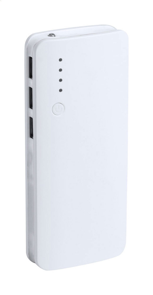 Kunststof USB powerbank met 3 oplaadpoorten en 10000 mAh batterij. Zonder oplaadkabel.