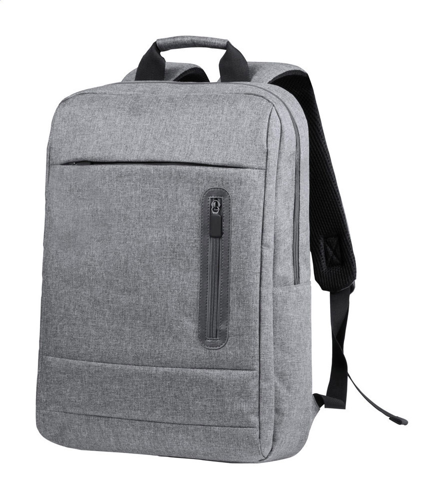 Rugzak met meerdere geritste compartimenten, gevoerde schouderbanden en laptopcompartiment (15"). 600D polyester.
