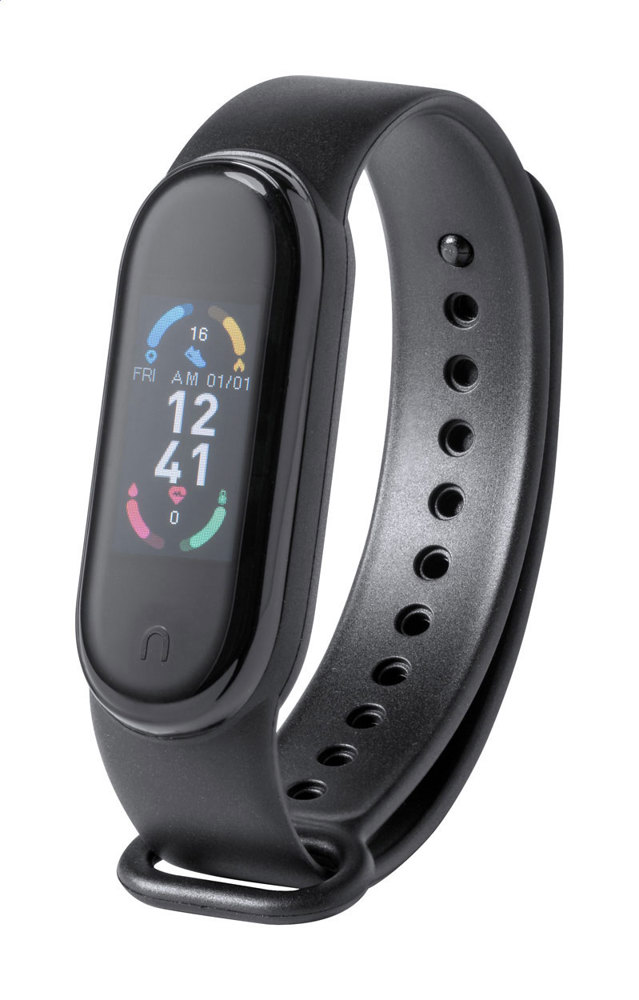 Meertalig, draadloos smartwatch met 0,96" TFT scherm en TPU band. Met hartslag-, bloeddruk- en bloedzuurstofmonitorfuncties. Inclusief USB-oplaadkabel.
