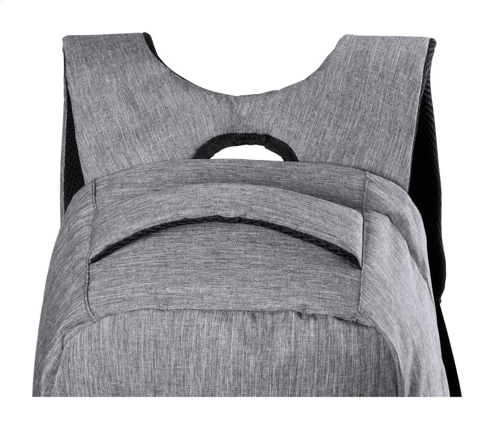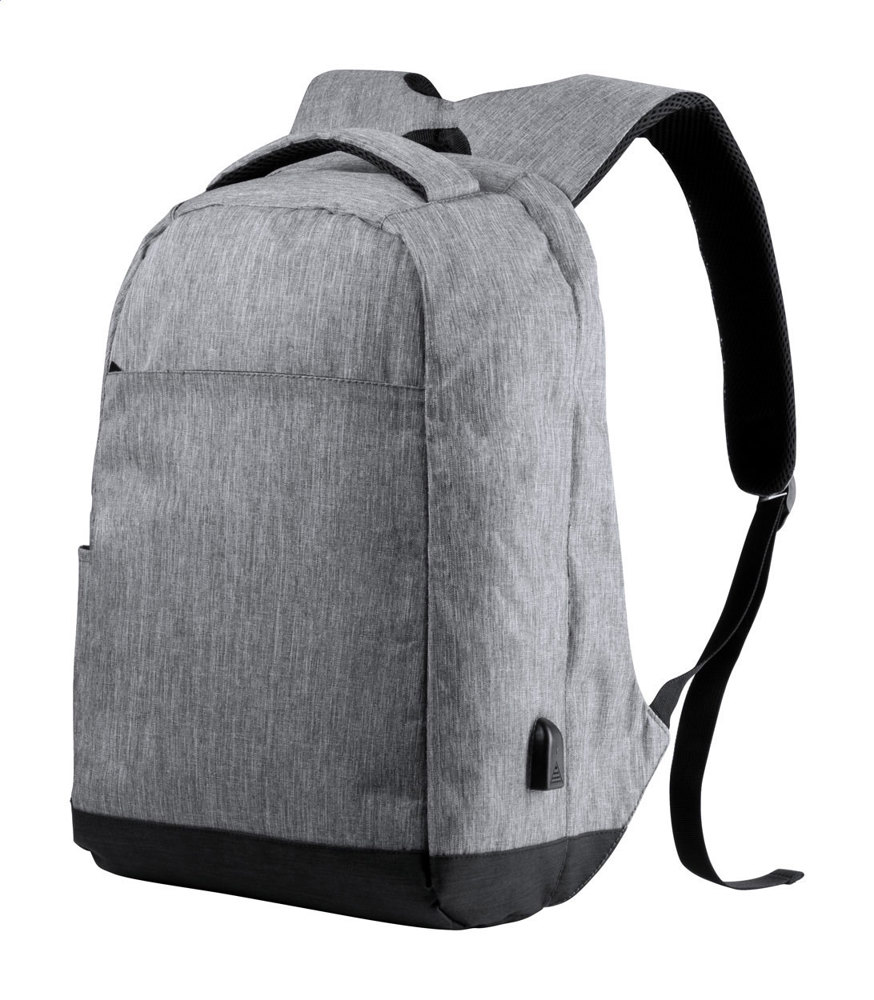 Antidiefstal-rugzak met meerdere vakken, gewatteerde laptop (15") en tabel (12") compartiment, gewatteerde rug en schouderriem. Met trolleyriem en ingebouwde USB-aansluiting voor powerbanks. 300D polyester.