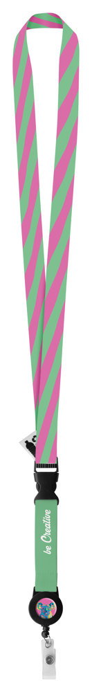 Custom made RPET-lanyard met afneembare telescopische pashouder. Met sublimatiedruk aan beide zijden. MOQ: 100 stuks.