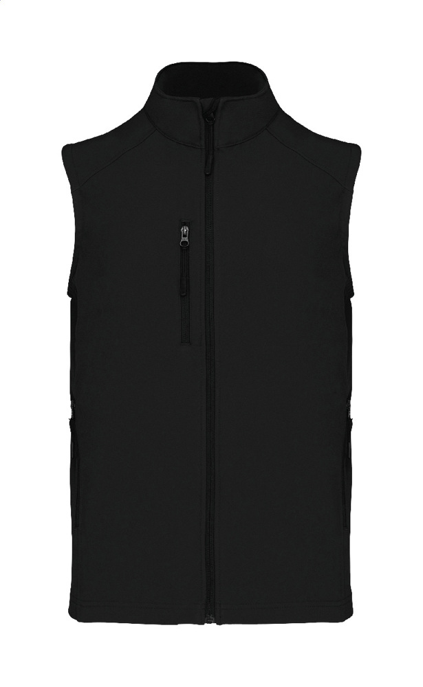 Drielaags, ademend, wind- en waterdicht softshell bodywarmervest met ritssluiting, borst en zijzakken. Met ademende middenlaag en micropolaire fleece binnenlaag. 95% polyester en 5% elastaan, 300 g/m². Product van het merk Kariban.