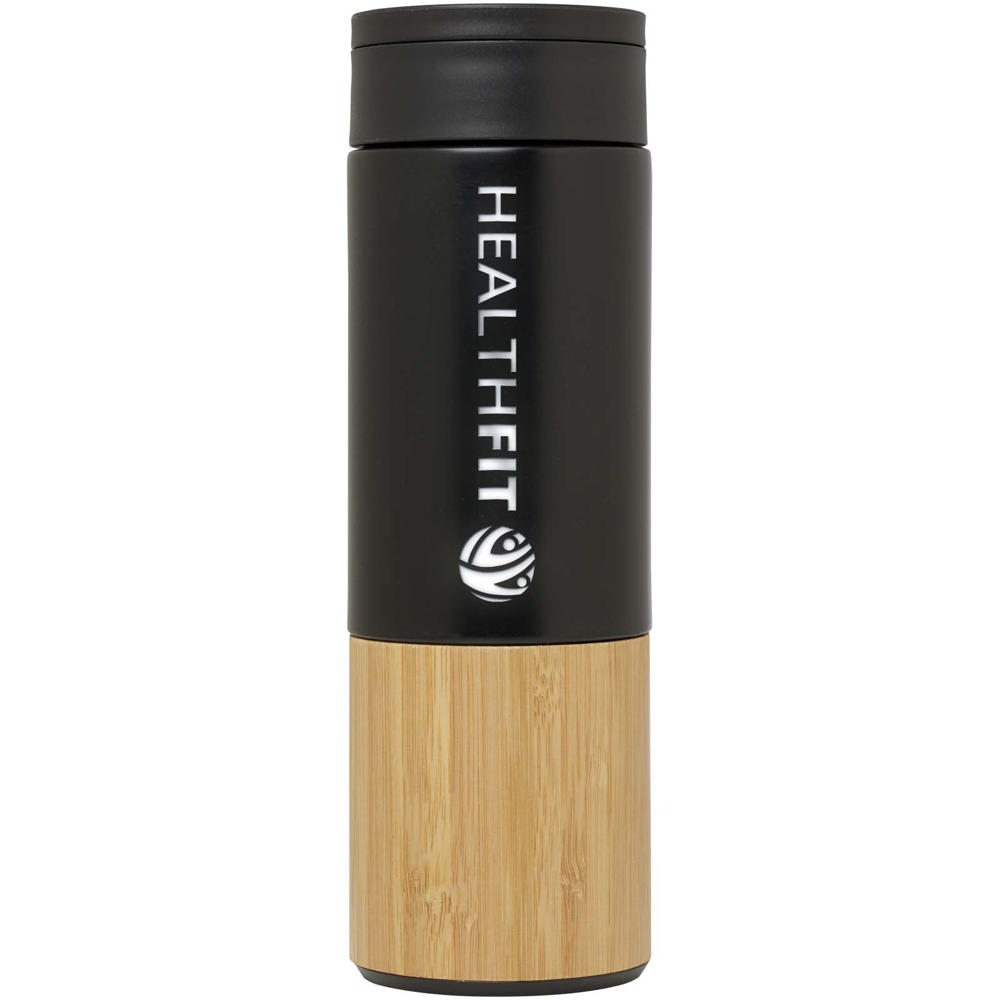 De Carmen geschenkset bestaat uit een A5 notitieboek met harde kaft, een balpen, een waterfles en een paraplu. Het notitieboek heeft een zwarte elastische sluiting en een lintmarkering, en 80 gelinieerde crèmekleurige vellen papier van 80 g/m². De kaft van het notitieboek fungeert samen met de bamboe halve cirkel als telefoonstandaard. De balpen is gemaakt van RCS gecertificeerd gerecycled aluminium met een zwarte spraycoating en een grip van bamboe. Peninkt: zwart. Schrijflengte: 1000 meter. De 450 ml waterfles is gemaakt van roestvrij staal met een bamboe accessoire aan de onderkant. Alleen handwas. Grootte fles: 6,6 x 22,2 cm. De 21" paraplu heeft een zwarte pongee stoffen kap, zwarte metalen steel, zwarte fiberglas baleinen en een bamboe handgreep. Grootte paraplu: 28,3 x 5,5 cm. Afmeting van geschenkverpakking: 36 x 30 x 8 cm.