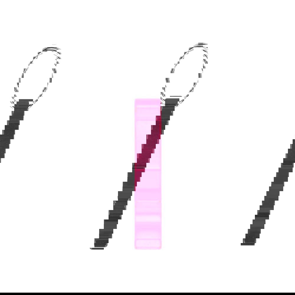 Aluminium sleutelhanger met gecombineerde fles- en blikopener. Lichtgewicht, duurzaam en ideaal voor dagelijks gebruik.