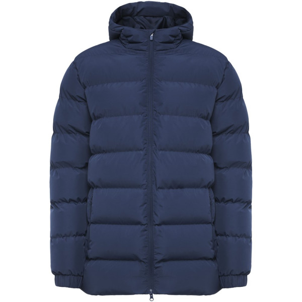 Gevoerde sportparka. Capuchon met klep. Rits aan de voorkant met bijpassende trekker en kinbeschermer. Elastische manchetten. Twee zijzakken met rits. Binnenzak links op de borst. Binnentoegang voor herverwerking. Verwijderbaar etiket. Waterbestendig. Winddicht.