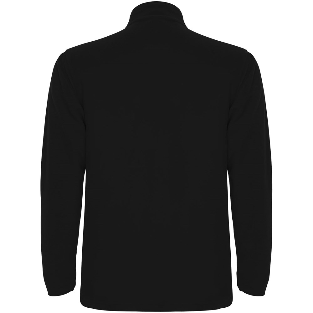 Microfleece met halve rits in nek- en kinbeschermer. Manchetten met bijpassende elastische bies. Verwijderbaar etiket. Het model is 190 cm en draagt maat L.