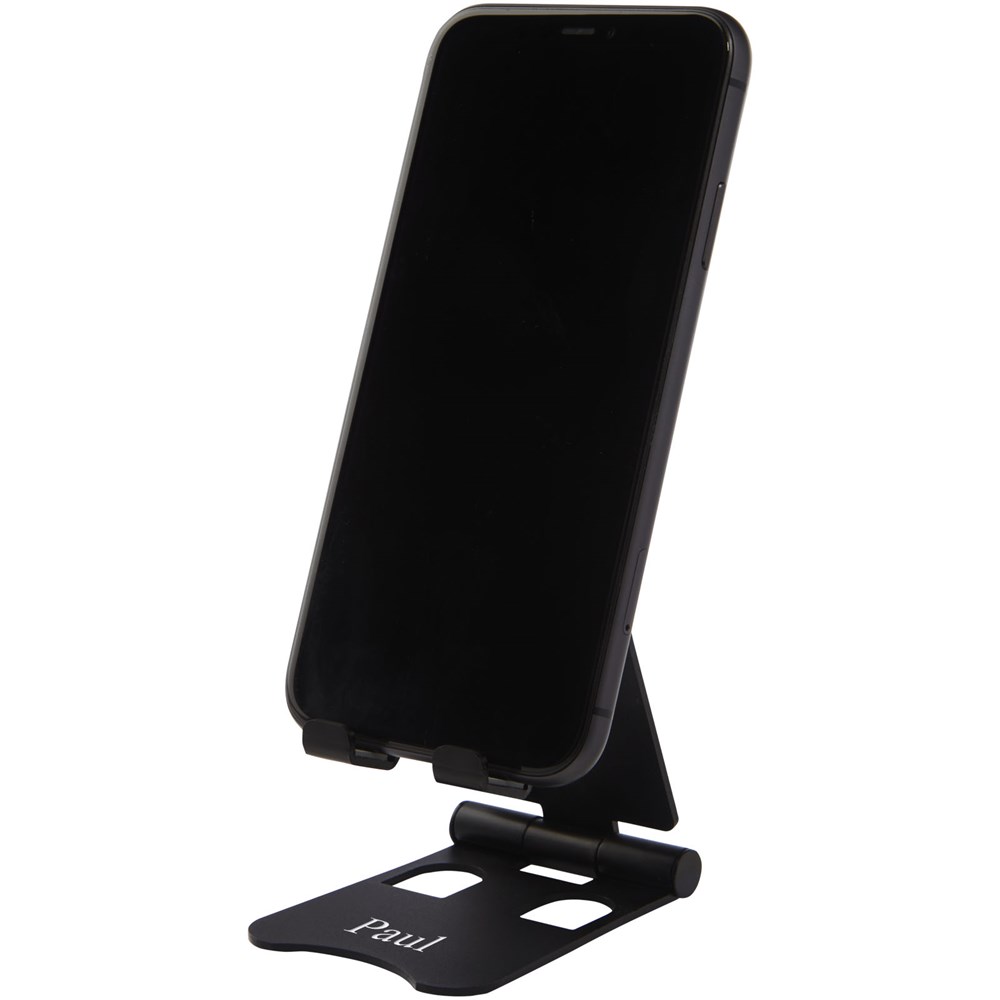 Opvouwbare telefoonstandaard van aluminium. Zowel de hoogte als de kijkhoek kunnen worden aangepast, waardoor dit het perfecte accessoire is voor telefonische vergaderingen, uitzendingen, livestreaming of gewoon om een film te kijken. De onderkant is voorzien van antislipmateriaal om verschuiven te voorkomen. Geleverd in een geschenkverpakking van kraftpapier met een kleurrijke sticker.
