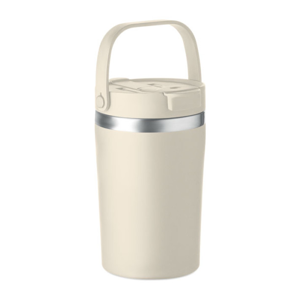 Dubbelwandige gerecyclede roestvrijstalen (90% gerecycled roestvrij en 10% roestvrij staal) drinkbeker met PP 2-in-1 drink- en rietjesdop. Lekvrij en duurzaam. Inhoud: 350ml.