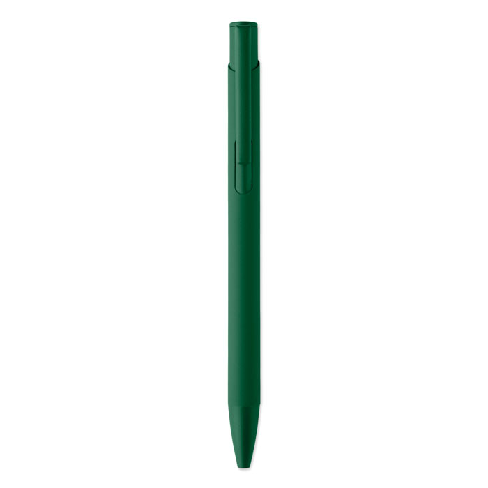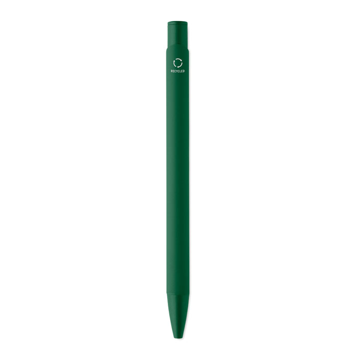 Pen met drukknop van gerecycled aluminium met ijzeren clip en een rubberen gekleurde houder. Blauwe inkt.