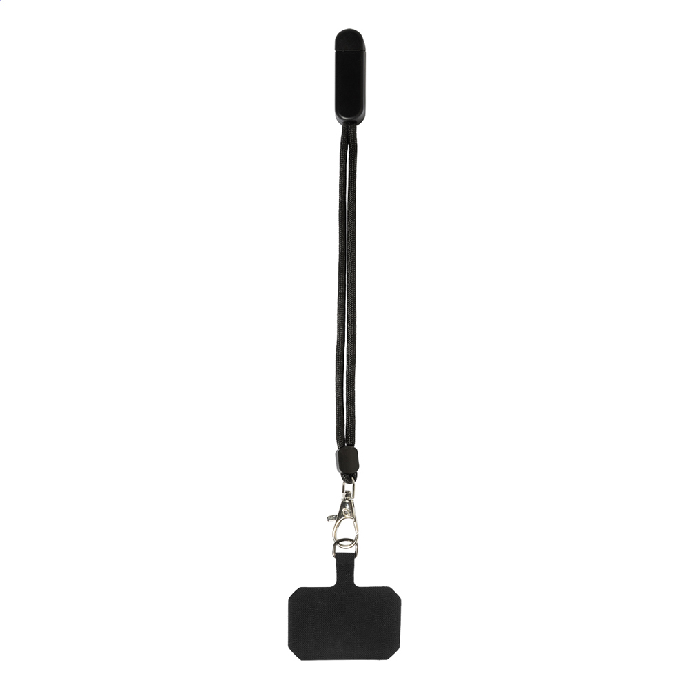 RPET mobiele houder polsbandje met telefoon inzetstuk en gerecycled ABS bureau mobiele standaard.